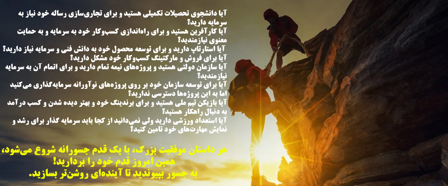 استارتاپها، شرکتهای دانش بنیان و واحدهای فناور: شما نیز میتوانند در بخش فردی و سازمانی و در حوزه سرمایه پذیری و سرمایه گذاری در این جشنواره شرکت نمایند. وجود بسترهای مشارکت مالی، مشارکت بازرگانی، مشارکت در ایجاد و توسعه دانش فنی، مشارکت تجهیزاتی، مشارکت پروژهای، مشارکت داوطلبانه، مشارکت مهارت افزایی و آموزش در این جشنواره میتواند زمینه را برای رشد و ارتقا شما و نیز استفاده از ظرفیتهای علمی، فنی و دانشی استفاده نشده فراهم نماید. هم اکنون نسبت به ثبت نام و شرکت در این جشنواره اقدام نمایید.